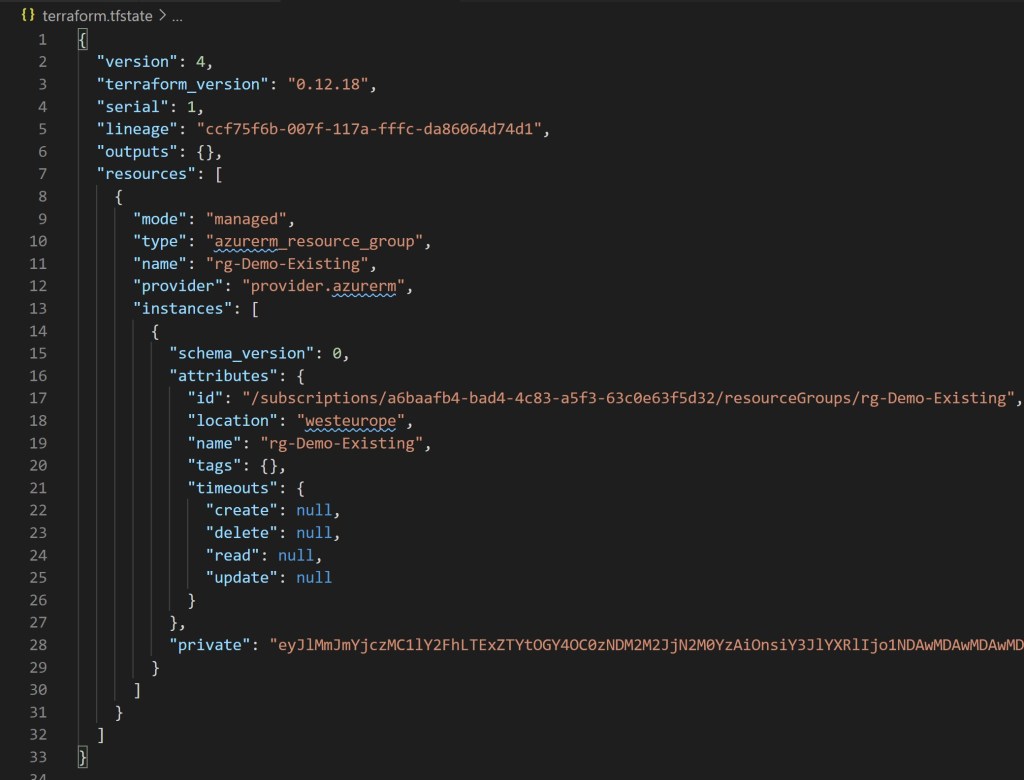 5. Once the import is successful, you will see the state file has been updated with the imported resources. We can browse the state file and read the JSON and verify that they are being managed by the state file.