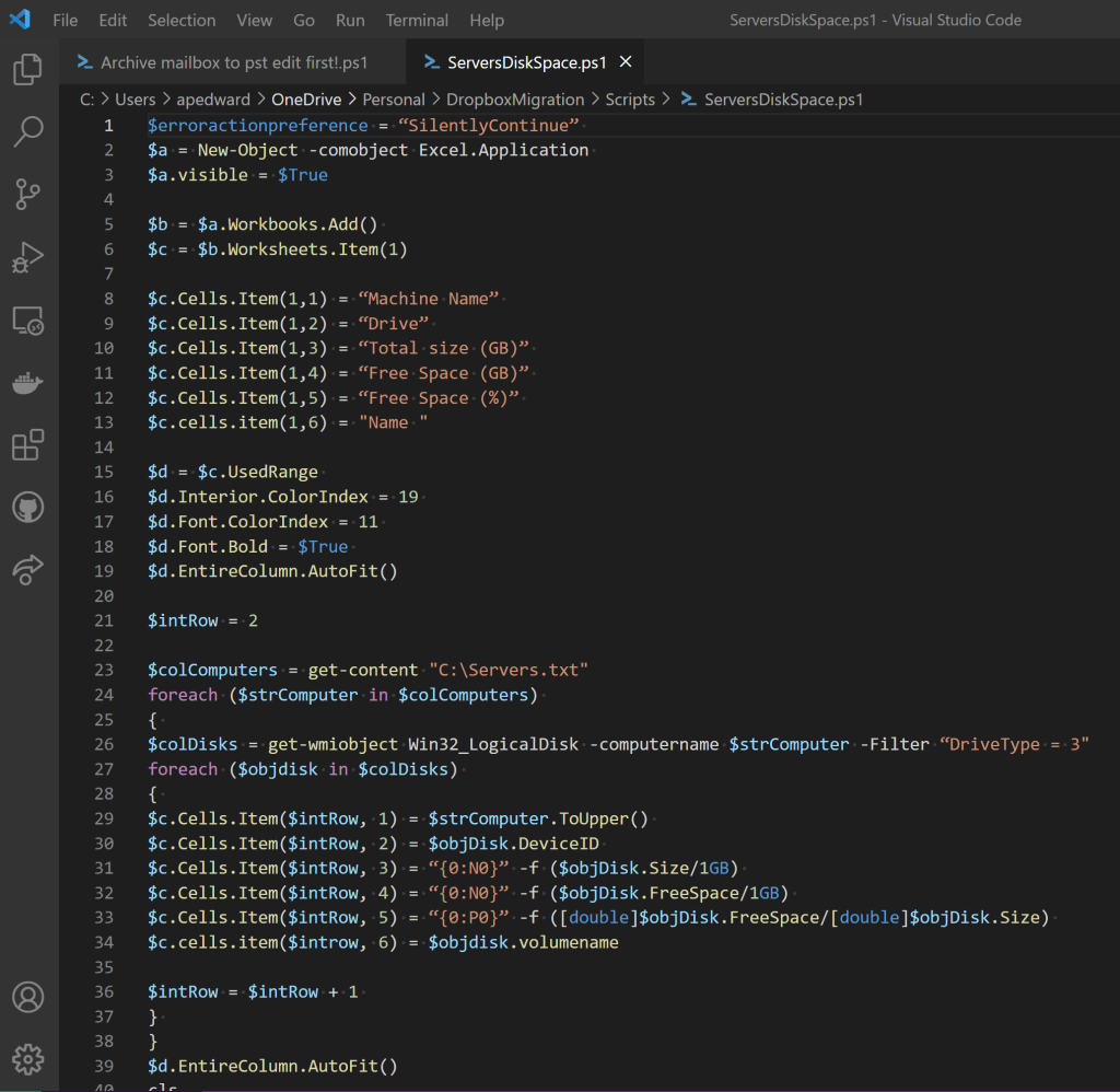 I never really wrote out massive scripts with PowerShell, always tasks, queries and automation of some task. Saying that, I have also found a folder from those days with a library of scripts that I used on a regular basis. For fun, I opened a few up to see what I had written…..